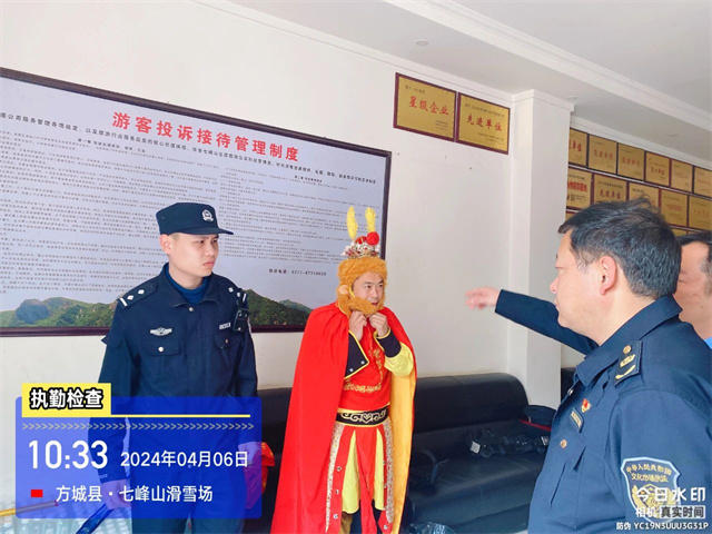 4月6日早晨開始,我景區(qū)組織了大量安保人員在景區(qū)全范圍內(nèi)進(jìn)行拉網(wǎng)式排查,上午10點(diǎn)左右,在景區(qū)“玉女湖”景點(diǎn)附近發(fā)現(xiàn)了正在換裝的“銅人”與“孫悟空”兩位男子。景區(qū)第一時(shí)間向縣文廣旅局以及縣公安局上報(bào)說(shuō)明,相關(guān)工作人員第一時(shí)間趕到現(xiàn)場(chǎng),經(jīng)我縣文旅執(zhí)法與公安人員現(xiàn)場(chǎng)詢問(wèn):“銅人”與“孫悟空”均說(shuō)明是其自行買票進(jìn)入景區(qū)內(nèi),與游客合照誘導(dǎo)消費(fèi)的行為均屬于個(gè)人行為,與七峰山景區(qū)無(wú)關(guān)。目前該兩名男子已被公安局執(zhí)法人員帶走進(jìn)行進(jìn)一步調(diào)查。