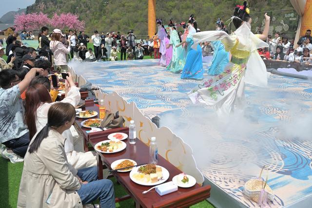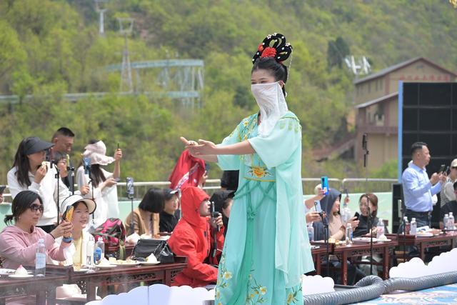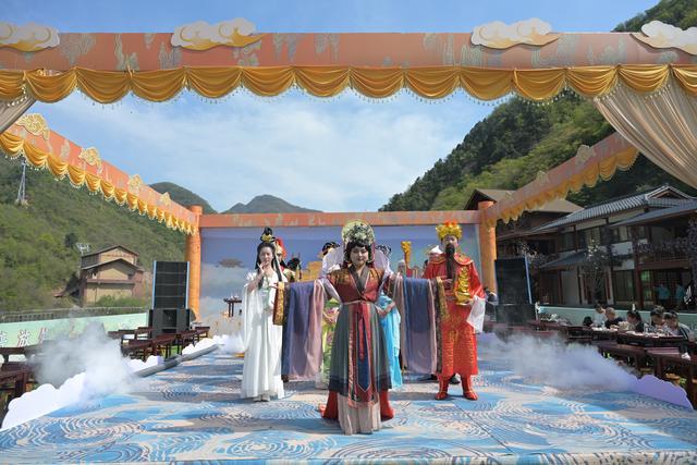 4月11日,三門峽仙門山景區(qū)將這一傳說變成了沉浸式實景演出。在仙門山翠坪的蟠桃宴會現(xiàn)場,無數(shù)“神仙”齊亮相,帶來了一場非凡的視覺盛宴。