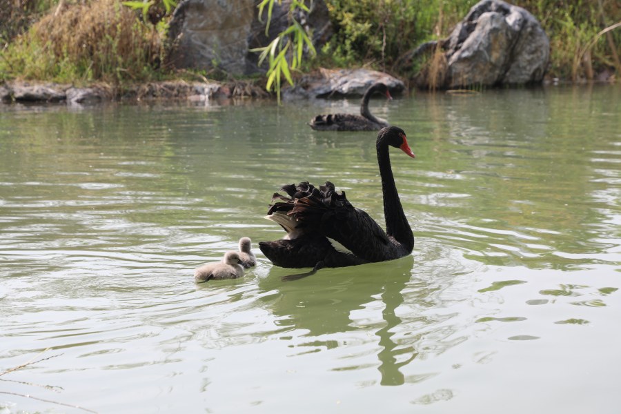 工作人員特別提醒游客,拍攝觀賞黑天鵝時,請與它們保持距離,不要驚擾它們。園區(qū)為確保小天鵝的健康成長,特意準(zhǔn)備了營養(yǎng)豐富的膳食食譜,請游客不要私自帶食物投喂天鵝,以免危害其身體健康。