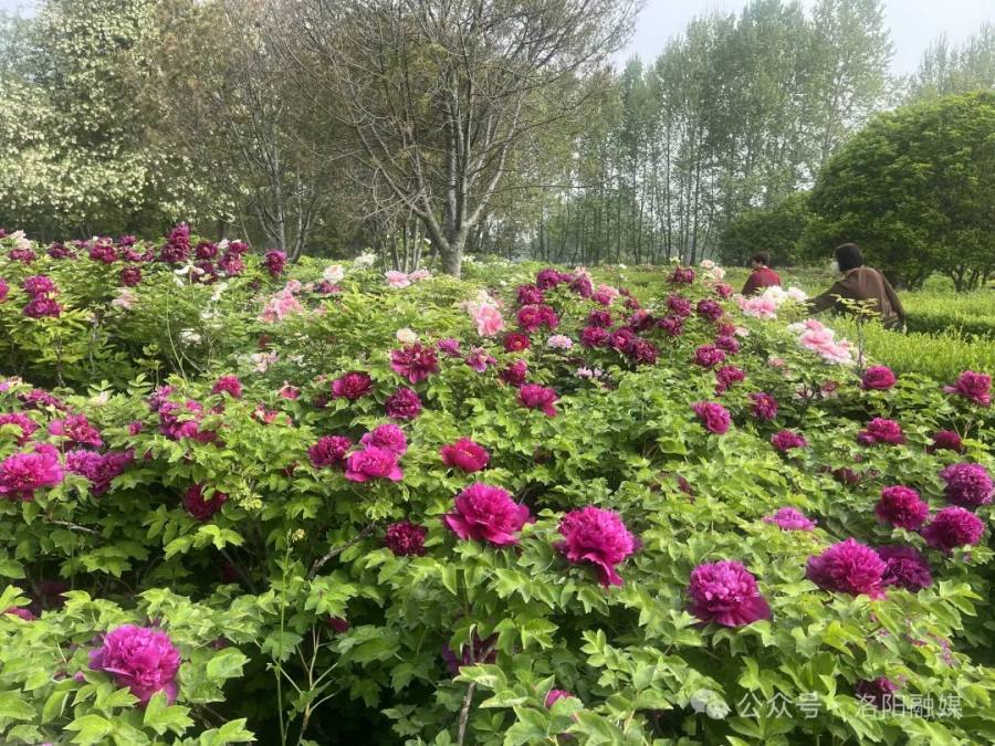 全園共有430多個(gè)品種牡丹開放,開花牡丹約占本園牡丹的40%,主要分布在東門內(nèi)廣場、二喬亭、國花臺(tái)、丹輝園、唐風(fēng)隋影廣場等處。其中:盛開的牡丹品種有名望、紫紅殿、島藤、帝冠、日向、神樂獅子等;初開的牡丹品種有金閣、紫斑、彤云、芳紀(jì)等。園內(nèi)二月蘭、櫻花等競相綻放。
