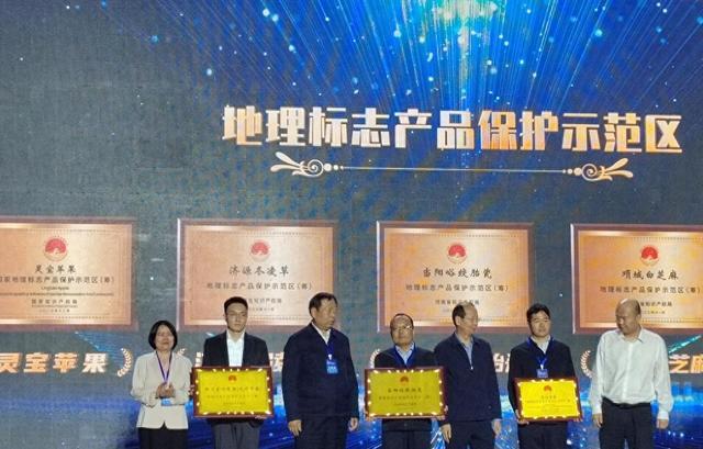 活動中,潢川空心貢面(光州貢面)地理標志產品保護示范區(qū)被正式授牌,潢川縣政府副縣長程驍男代表潢川縣領取獎牌。