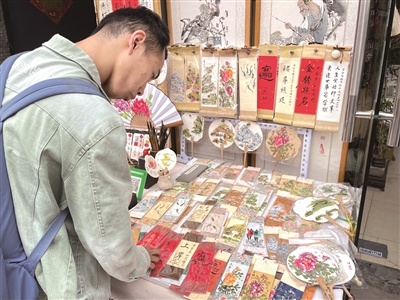游客在選購文創(chuàng)伴手禮 王若馨 攝