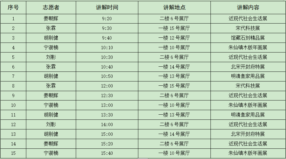 志愿服務(wù)信息開封市博物館志愿者在五一長假期間,將為觀眾提供多場次專題展覽的免費(fèi)講解,開博將提前預(yù)告每日講解時(shí)間表和主講簡介,歡迎廣大觀眾朋友前來收聽。5月4日志愿講解信息: