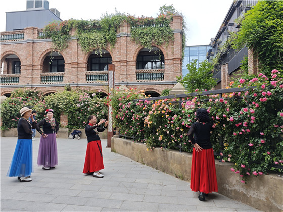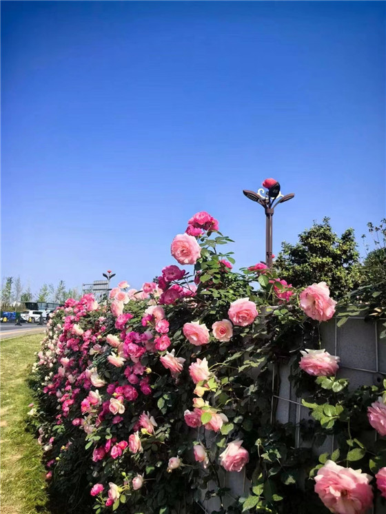 老城區(qū)以天心·校場(chǎng)里文化創(chuàng)意產(chǎn)業(yè)園為重點(diǎn)園區(qū),選用龍沙寶石、藤彩虹、弗洛倫蒂娜等10余種月季混合種植,并配植木香、風(fēng)車茉莉、紫藤等,打造出1500平方米的繽紛花墻。