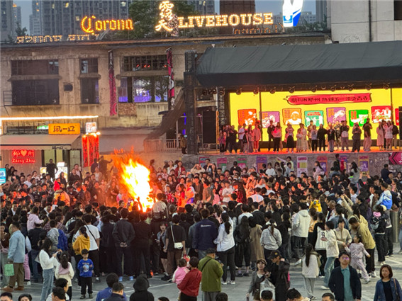 豐富多彩的新業(yè)態(tài)如雨后春筍般正在該創(chuàng)意園蓬勃生長。“中州肥皂”文創(chuàng)冰激凌、繽紛朱雀市集、特色網(wǎng)紅餐廳……在一處手繪攤位坐滿了市民,大家用油畫筆勾勒出人物的頭像,一對情侶正拿著自己的卡通畫像欣賞。“牛氣沖天、天天向上、上上下下、下不為例……”在四字詞語接龍互動小游戲活動現(xiàn)場,游客現(xiàn)場接龍成功即可獲得免費(fèi)的啤酒、冰激凌、代金券。晚上七時(shí),當(dāng)精彩的篝火派對活動啟動,頓時(shí)將綠城濃郁的夜經(jīng)濟(jì)氛圍推向高潮。
