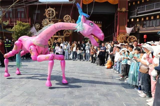 “五一”小長假,開封市文旅多元供給,旅游演藝好戲連臺(tái)。其中,清明上河園景區(qū)傀儡狂歡節(jié),《岳飛•郾城大捷》《打鐵花之盛世大宋》《大宋•東京保衛(wèi)戰(zhàn)》等百場精彩演出震撼上演,《大宋•東京夢華》五天共演出16場,場場爆滿,景區(qū)活動(dòng)期間演出累計(jì)近千場;萬歲山武俠城以“武俠演繹、江湖豪情”為主題,每天近二百場演出,為游客帶來一場穿越江湖的視聽盛宴,《三打祝家莊》《打鐵花》《王婆說媒》等節(jié)目繼續(xù)上演;開封府二期非遺街區(qū)新增宋代特色《民間雜藝》表演,雜技、接火棍、口中噴火等民間絕活依次亮相;龍亭公園推出“來大宋入宮上朝”主題沉浸式劇本殺活動(dòng)、“西園雅集”主題活動(dòng),還原西園雅集國風(fēng)場景;翰園碑林帶來書法描紅、漆扇、拓片等數(shù)十種文化沉浸體驗(yàn)。