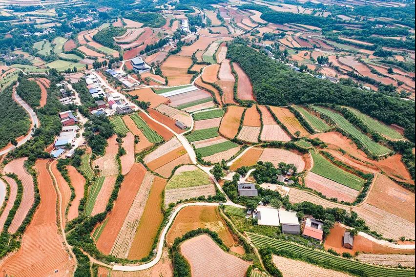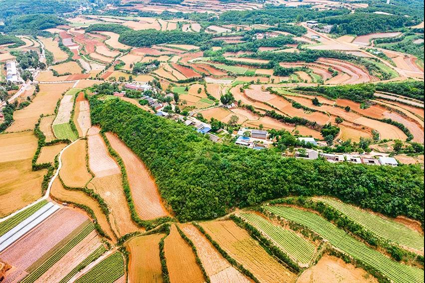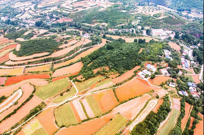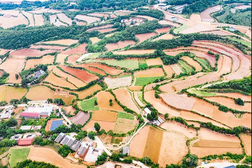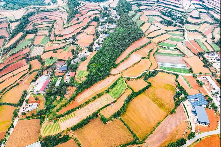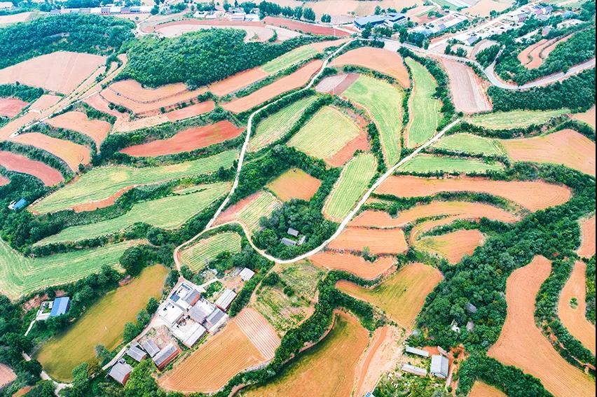 層層梯田,多種植物匯集,色彩多樣。