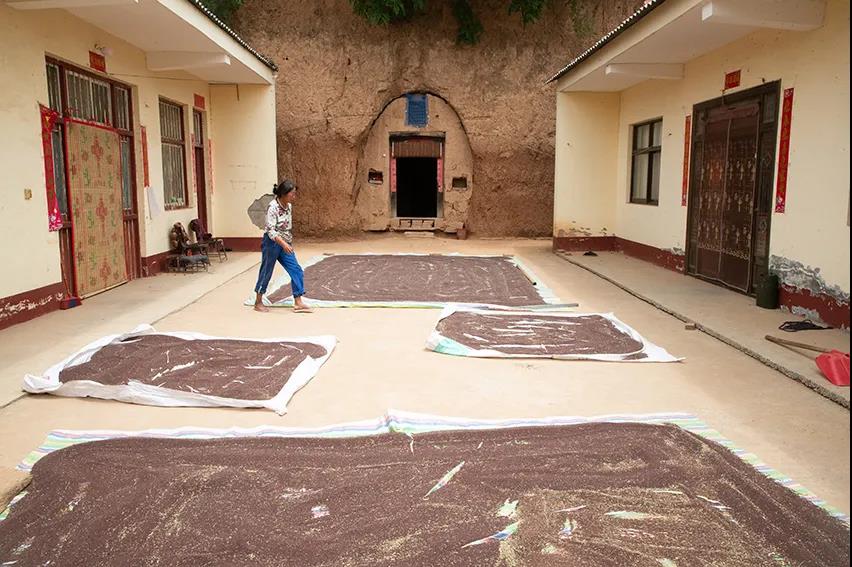 這戶人家主房還是土窯洞,廂房是新蓋的平房,地上曬的是收獲的白菜種子。