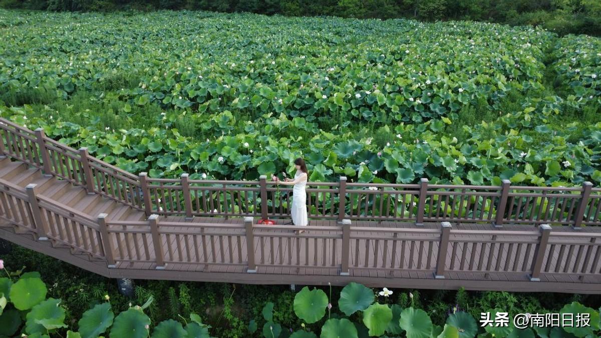 在發(fā)展荷花種植產(chǎn)業(yè)的基礎(chǔ)上,月河鎮(zhèn)積極推動(dòng)文旅融合,精心修建了賞荷步道和觀光棧道,為游客和桐柏縣城居民提供了絕佳的觀賞體驗(yàn)。