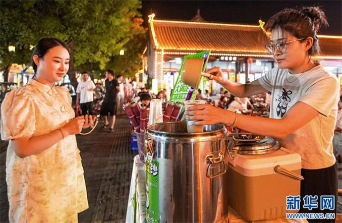 9月8日,河南省商丘市睢陽區(qū)商丘古城,游客在購買商品。