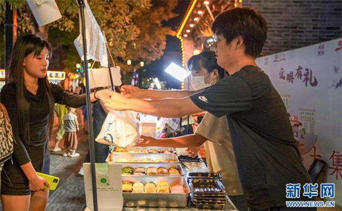 9月8日,河南省商丘市睢陽區(qū)商丘古城,游客在購買小吃。