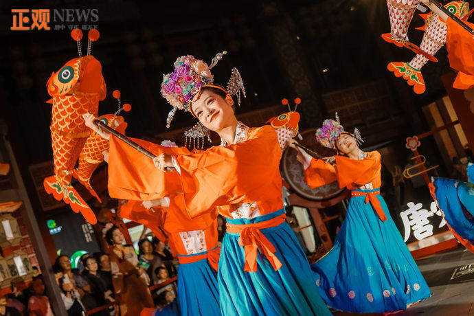 酒肆桌臺旁,與謫仙李白對酒當(dāng)歌;月老辦事處打卡臺前,月老為你“牽線姻緣”;伴著優(yōu)美舞姿,胡姬吟唱往昔旋律;逛著非遺集市,品家門口的民俗韻味……
