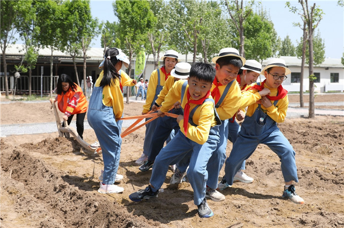 中原農(nóng)民出版社主導開發(fā)“向上吧!農(nóng)場”實踐課程,帶領(lǐng)學生犁地、施肥、播種,親手種下西紅柿、黃瓜、辣椒,引導學生“學農(nóng)、知農(nóng)、愛農(nóng)”。