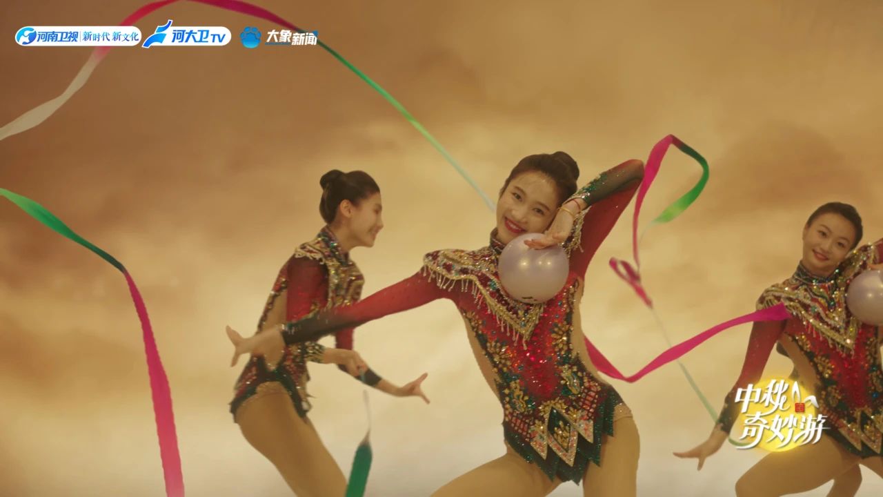 中國國家藝術(shù)體操隊再次演繹在2024年巴黎奧運會上的表演節(jié)目《鳳鳴凌霄》,同時借助現(xiàn)代視聽藝術(shù),加入了月下嫦娥神話傳說的背景,構(gòu)建出一個個充滿詩意和奇幻的美學(xué)空間,其間“唐宮月夜”的片段造型,融合古典與現(xiàn)代、藝術(shù)與體育元素,讓觀眾更為直觀感受中國傳統(tǒng)文化的獨特魅力。