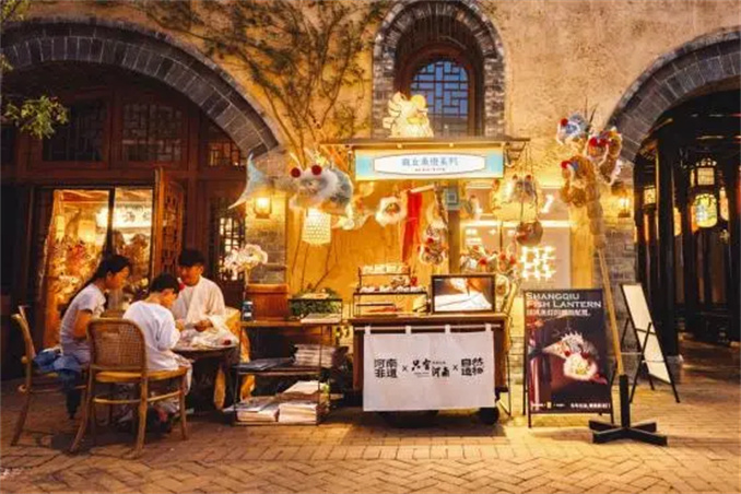 在地坑院的非遺市集現(xiàn)場(chǎng),花車攤位前門庭若市、人頭攢動(dòng)。據(jù)了解,此次非遺市集即“中秋非遺游園會(huì)”,是由河南省文化和旅游廳主辦,非遺傳承創(chuàng)新基地只有河南·戲劇幻城聯(lián)合承辦的中國傳統(tǒng)節(jié)日主題系列活動(dòng);顒(dòng)現(xiàn)場(chǎng),涵蓋有商丘魚燈、皮影戲、泥咕咕、布老虎、嵩山雕刻、農(nóng)民畫等非遺項(xiàng)目,并邀請(qǐng)王站、孟照東、李衛(wèi)雪、秦然、楊偉強(qiáng)、寇黨培等數(shù)位非遺傳承人站臺(tái),與客人面對(duì)面交流非遺文化、并現(xiàn)場(chǎng)表演互動(dòng)。