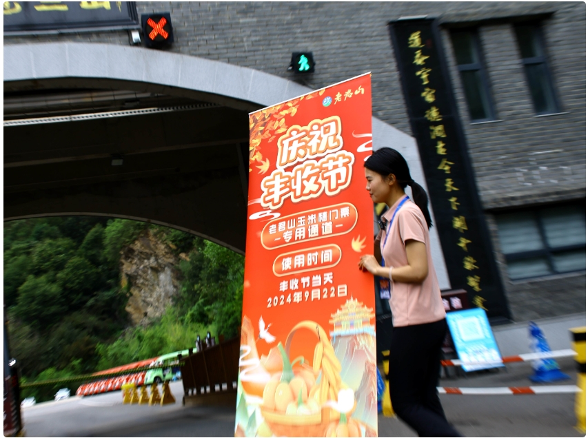 “農(nóng)民朋友們:共慶豐收節(jié),你們的玉米穗就是老君山門票!”這幾天,老君山景區(qū)的巨型條幅、LED大屏等傳遞著中國農(nóng)民豐收節(jié)的暖心消息。