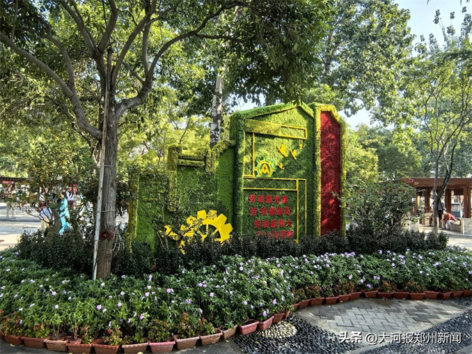 位于雕塑公園南廣場(chǎng)、雕塑藝術(shù)館的《舞動(dòng)鄭州》、《奮斗百年路,啟航新征程》兩組立體花壇,在三角梅、國(guó)慶菊、矮牽牛等花卉簇?fù)硐,姹紫嫣紅,格外搶眼;廣場(chǎng)兩側(cè)寓意祖國(guó)繁榮昌盛、國(guó)泰民安的12組象征著“錦鯉”、“花瓶”的造型菊花一字排開,在彩葉草、多頭菊、矮牽牛的襯托下更顯絢麗;繽紛多彩的時(shí)令草花栽植成一道道黃色、粉色、紫色的蜿蜒花溪,讓人賞心悅目,流連忘返。