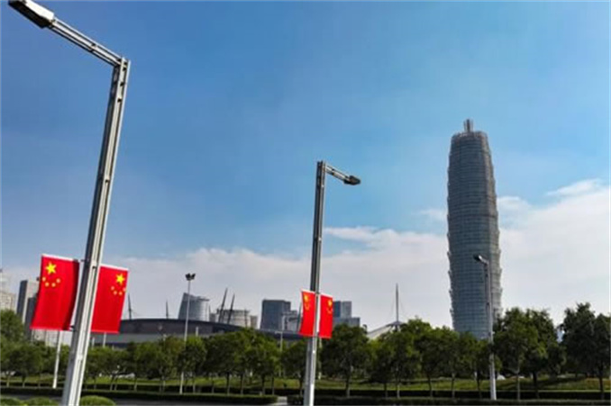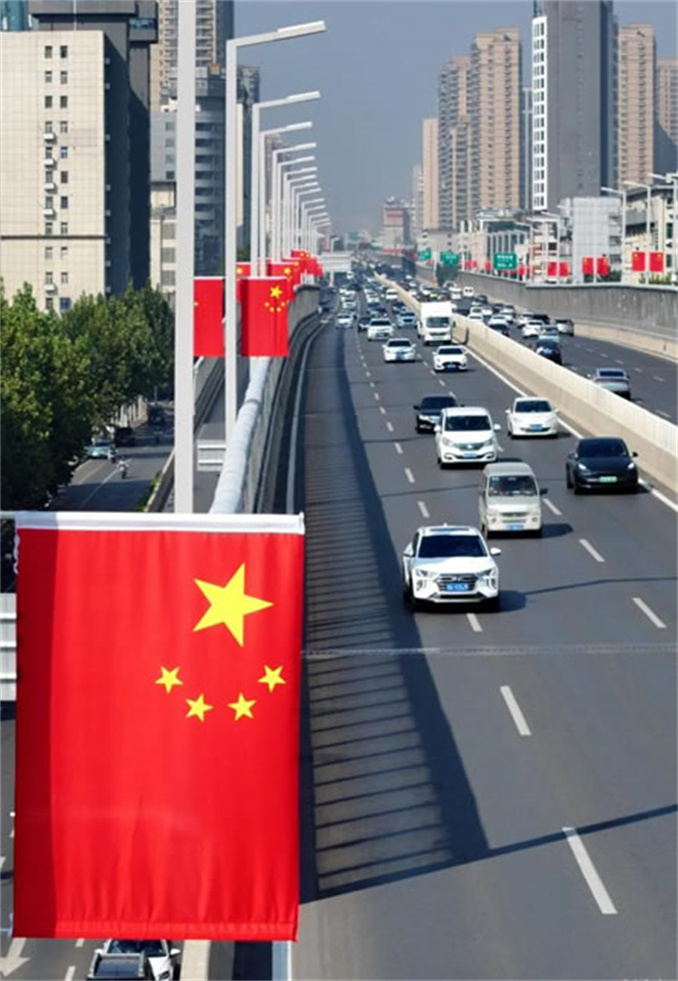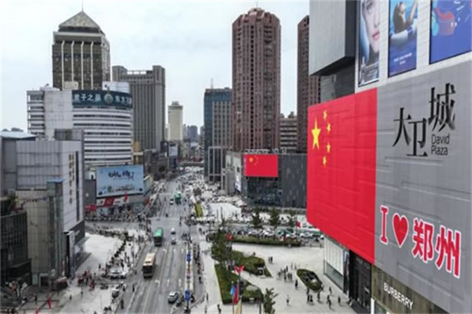 連日來,五星紅旗裝點著鄭州的道路、商場,到處是喜迎國慶的景象,為多彩的城市增添了一抹鮮紅的色彩!