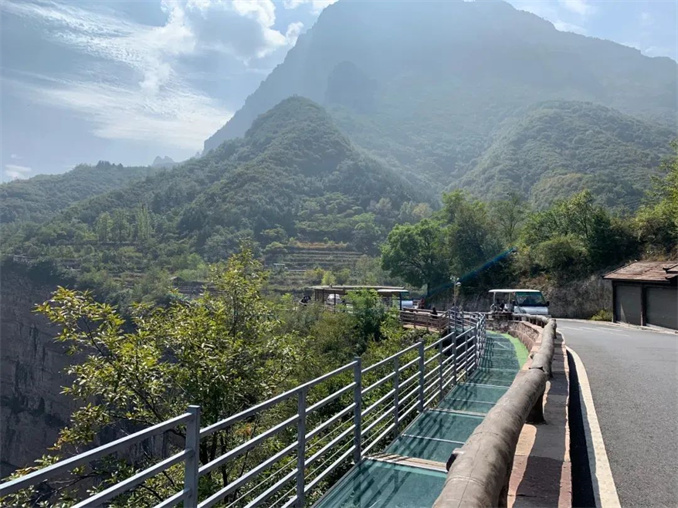 “太行天路”景區(qū)位于太行山之巔,北起桃花谷景區(qū),南至仙霞谷景區(qū),全長(zhǎng)約30km,既是景區(qū)環(huán)線(xiàn)游覽道路的重要組成部分,更是俯瞰太行山壯美風(fēng)光的絕佳位置。