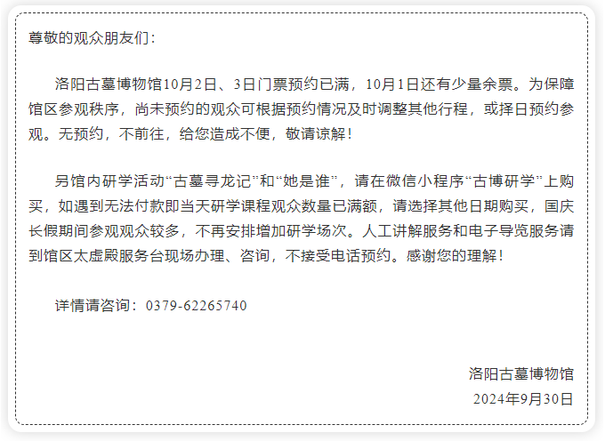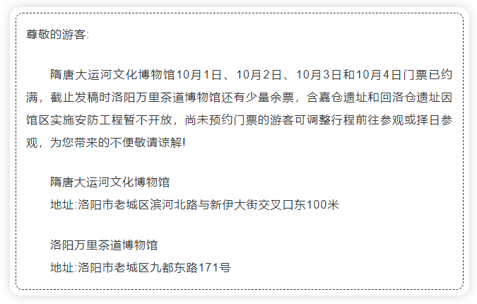 緊急提醒!洛陽多家景區(qū)、博物館預約已滿