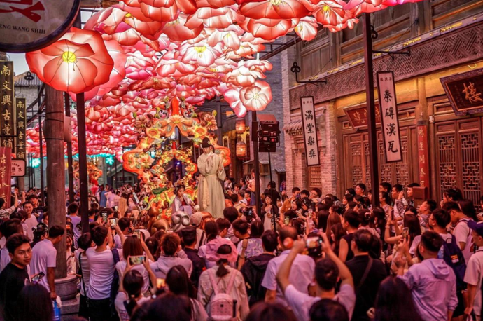 水上非遺火壺、國潮打鐵花、國風(fēng)大巡游、音樂假日……9月26日,記者從建業(yè)電影小鎮(zhèn)獲悉,國慶期間打卡漢服、感受國風(fēng)、體驗國潮,該景區(qū)正以“國潮七天,一路有戲”為主題,每天百場演出,迎接國慶節(jié)到來。據(jù)了解,10月1日至7日,該景區(qū)推出安排滿滿的“國慶節(jié)目單”,不僅有各類節(jié)目表演,還有NPC互動市集、國潮文創(chuàng)市集、各類獨具特色的主題客棧,內(nèi)容薈萃,縱享七天樂。