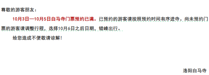 您的當(dāng)前位置:網(wǎng)站首頁 > 出行資訊 > >洛陽白馬寺景區(qū)限流公告