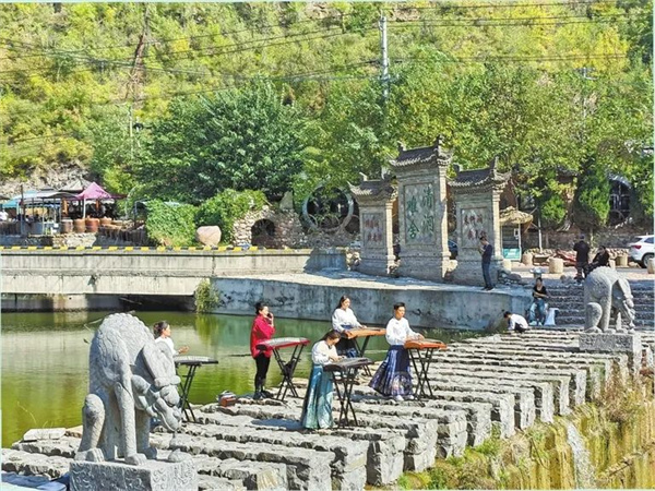 身著傳統(tǒng)服飾的古箏愛(ài)好者,在濟(jì)源南山產(chǎn)業(yè)旅游路沿線(xiàn)的坡頭鎮(zhèn)清澗村進(jìn)行演奏。