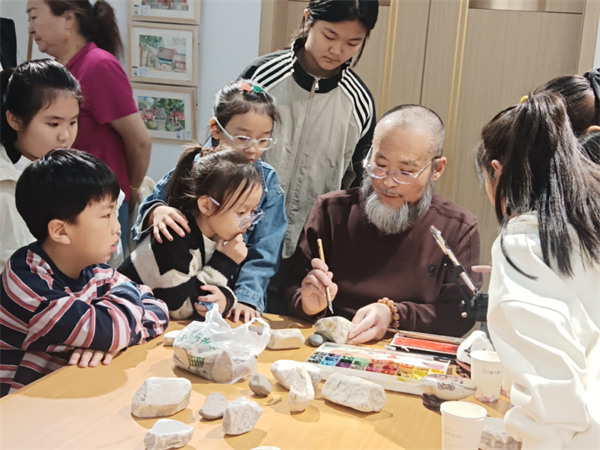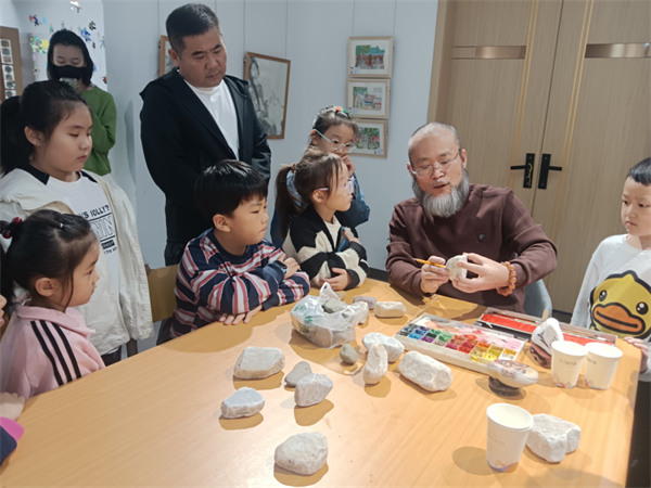 石畫作為繪畫的一種特殊形式,通過把畫和石頭本身特質(zhì)的結(jié)合,保留石頭自然之美,賦予石頭新的生命;顒蝇F(xiàn)場,陳鵬老師為參加活動的30余名小朋友講解了石畫的起源、嵩山石的特性以及傳統(tǒng)文化在石畫藝術(shù)中的體現(xiàn),并現(xiàn)場作畫演示石畫的創(chuàng)作技巧。隨著陳鵬老師畫筆的不斷移動,一幅幅精美的石畫作品躍然而成,無不展示著傳統(tǒng)文化的獨特魅力。