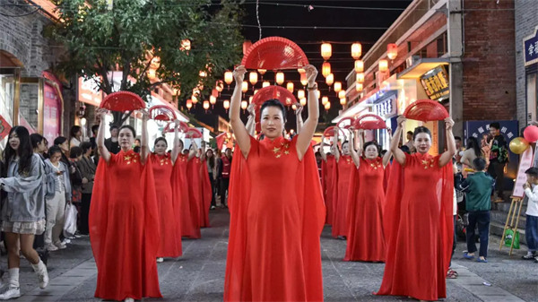 朝歌老街則以“古風+快閃”為主題,為游客們打造了一場穿越千年的視覺盛宴。夜幕降臨,街區(qū)的古典舞展示、古風走秀、真人互動等節(jié)目依次上演,古箏演奏、旗袍走秀等古風韻味十足的活動更是讓游客們仿佛穿越時空,夢回殷商。煙火氣滿滿的小吃街,炫彩奪目的燈光秀,精彩絕倫的演藝節(jié)目,節(jié)日喜慶的氛圍被推向高潮。