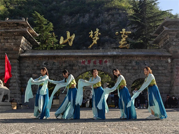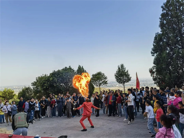在淇縣的景區(qū)和旅游街區(qū),非遺展示、游戲互動、實景演藝等新業(yè)態(tài)、新場景輪番上演,為游客們帶來了新穎獨特、韻味十足的假日體驗。云夢山景區(qū)內(nèi),小丑互動、變臉、頂幡、腹語表演等民間絕活兒輪番登場,讓游客在欣賞自然美景的同時,沉浸式感受軍事文化的智慧與魅力?扉W動感舞蹈秀、“黑悟空”真人秀等現(xiàn)代元素的加入,更是吸引游客們紛紛駐足觀看,拍照留念。古靈山景區(qū),“和國旗同框”系列活動吸引了眾多游客前來打卡,告白祖國。朝陽山景區(qū)邀請功夫達人、非遺傳人現(xiàn)場亮絕活兒,真人 COS 哪吒現(xiàn)場互動、吹爆氣球等互動游戲,讓游客沉浸其中,充分感受非遺魅力。