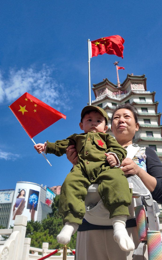 10月1日上午,鄭州二七廣場(chǎng)舉行升旗儀式,近萬(wàn)名市民自發(fā)前來(lái)觀看,表達(dá)對(duì)祖國(guó)的熱愛(ài)和祝福。