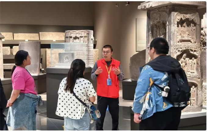 參觀時間不夠長?就延時閉館;門票預(yù)約不上?有黃牛搶票?就加大預(yù)約量投放,嚴(yán)把實體身份證刷卡入場關(guān);人工講解不夠多?除了院內(nèi)的人工講解,還首次吸納社會講解員為觀眾提供講解服務(wù)……為盡可能滿足大家的參觀需求,河南博物院努力提升服務(wù)質(zhì)量。作為該院社會服務(wù)的重要力量,255位河南博物院志愿者身著紅馬甲,在節(jié)日期間共提供咨詢引導(dǎo)、文明參觀勸阻、閘機服務(wù)、存包協(xié)助等義務(wù)服務(wù)978小時,開展公益宣講及講解服務(wù)177批次,“豫博紅”志愿服務(wù)成為河南博物院國慶假期的一道亮麗的風(fēng)景線。