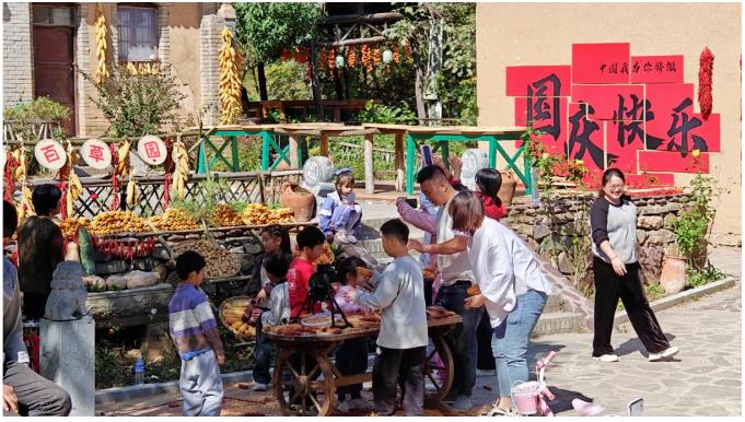 ▲豫西百草園豐收曬秋季吸引眾多兒童