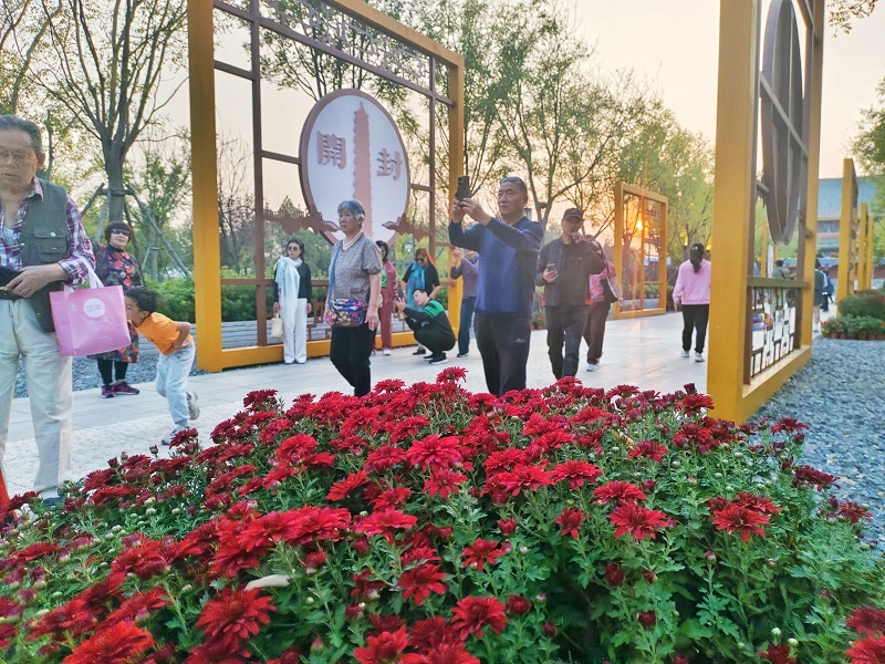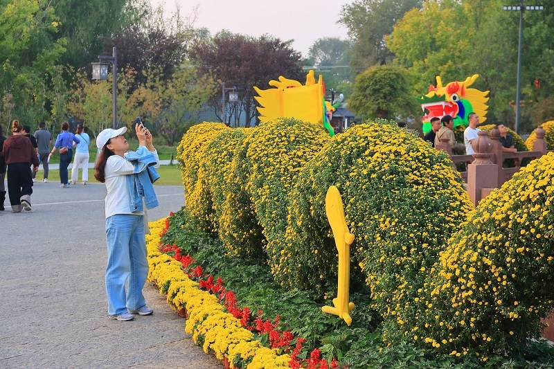 “我們是從四川過來的,早就知道開封菊花很有名,今天提前過來也是想錯(cuò)峰賞菊。”2024年10月10日一大早,來自四川的王女士就和朋友在河南省開封市清明上河園廣場與裝飾一新的“大龍船”拍照打卡,爽朗的笑聲、飄揚(yáng)的絲巾與斑斕的菊花相互輝映,構(gòu)成一幅動人的畫面。