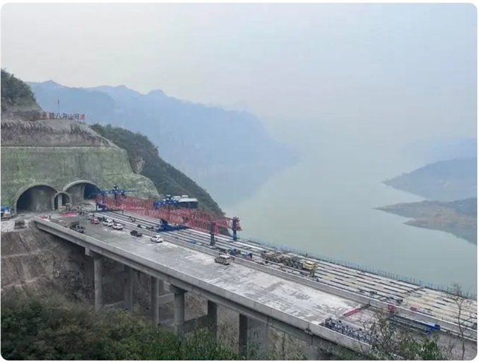 桃花島大橋位于黃河小浪底水利樞紐工程庫區(qū)內(nèi),采用雙向6車道標準,共23跨,全長929米,是濟新高速濟源段最長橋梁,橋墩上部共搭建40米混凝土T梁322片。