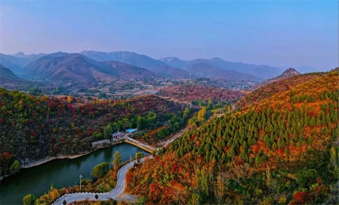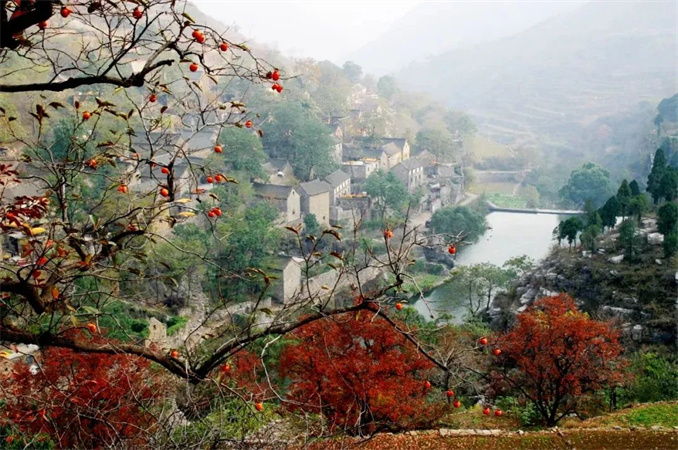 綠樹為伴,紅葉翩躚,列柿流丹,點綴其間,青磚黛瓦之下,與山水共繪一幅水墨長卷,是秋天的意境,是詩意的棲居。