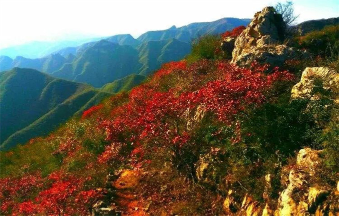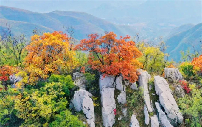 爛漫的紅色攜著橙、綠、黃的斑斕,在山巒間輕舞,流光溢彩,如夢似幻。