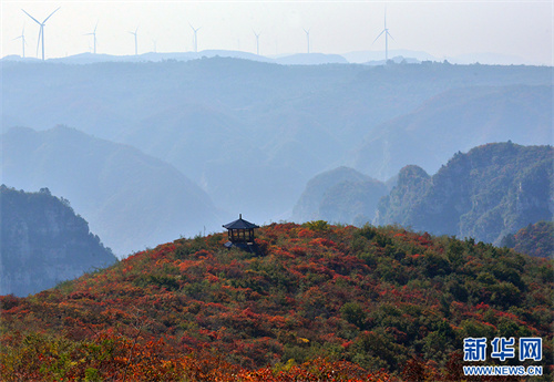 這是10月15日拍攝的焦作市博愛(ài)縣青天河風(fēng)景名勝區(qū)的紅葉。