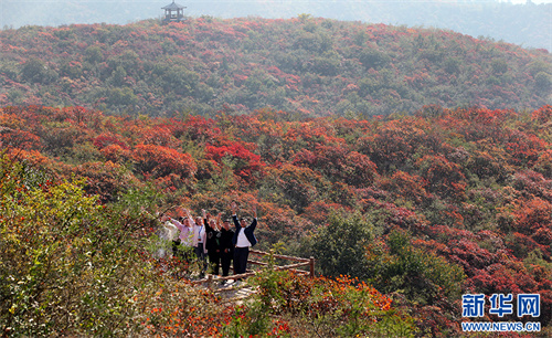 10月15日,在焦作市博愛(ài)縣青天河風(fēng)景名勝區(qū),游客徒步觀(guān)賞紅葉。