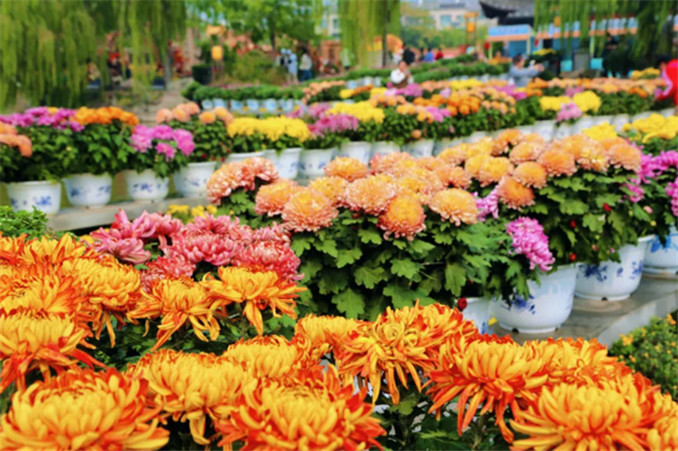 秋意漸濃,清明上河園正是紅橙黃綠時(shí),數(shù)萬(wàn)株菊花競(jìng)相綻放,五彩繽紛,形態(tài)各異,令人目不暇接。