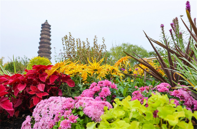 布展菊花約3萬(wàn)盆,菊花在巍巍鐵塔的映襯下顯得格外千姿百態(tài)。古樸鐵塔與嬌艷菊花相互輝映,形成獨(dú)特景觀,展現(xiàn)出別樣韻味。