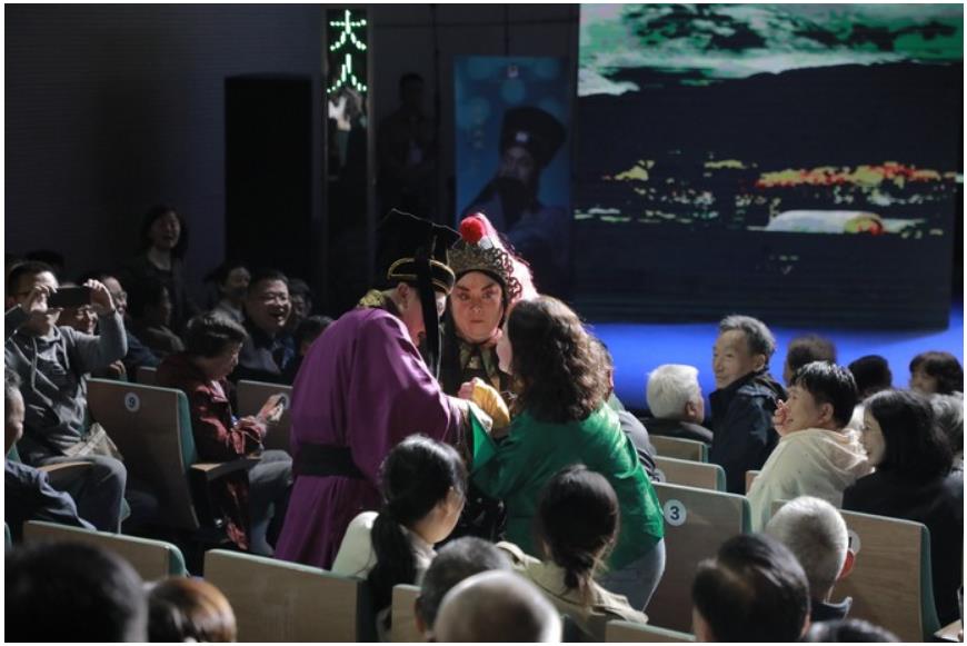 這樣的出場(chǎng)方式,讓湖北觀眾頗感意外,十分驚喜。尤其是“搜孤”環(huán)節(jié),屠岸賈的門客和士兵來到觀眾席搜尋孤兒,當(dāng)他們發(fā)現(xiàn)孤兒藏身之地后,遇到了一位女觀眾的強(qiáng)烈抵抗,她抱著孤兒死死不放,經(jīng)歷了幾個(gè)回合,才將孤兒奪走、將這位觀眾“摁”在座位上。