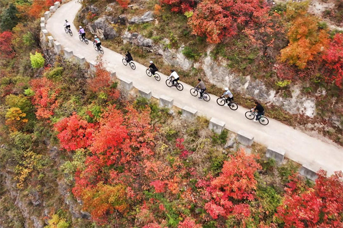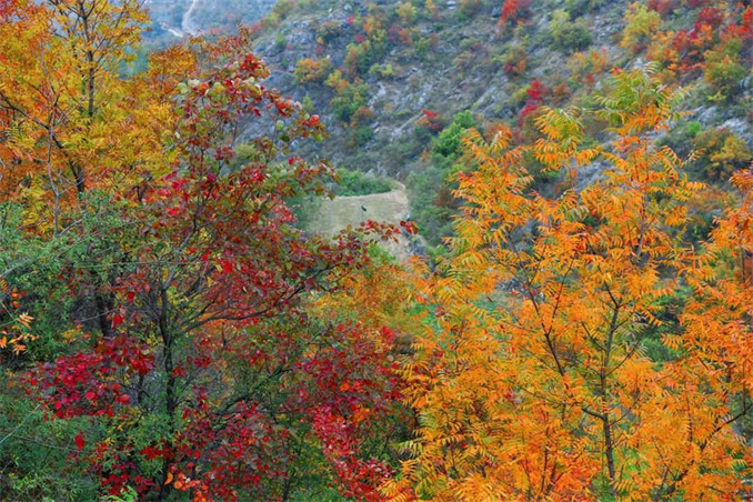 樹樹皆秋色,山山唯落暉。深秋時(shí)節(jié),走進(jìn)河南省南陽市鎮(zhèn)平縣石佛寺鎮(zhèn)仝家?guī)X石屋溝,山林被秋天的畫筆涂染得五彩斑斕,淺紅、深黃、明橙,交織在一起,宛如一幅絢麗的水彩畫,讓人沉醉其中。