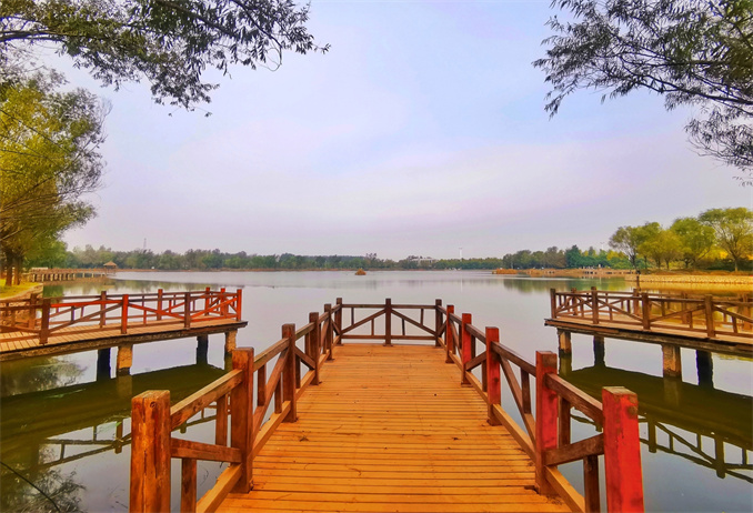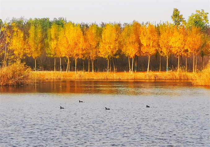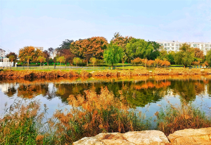 晚秋時(shí)節(jié),河南省商丘市虞城縣城區(qū)公園里景色如畫,色彩斑斕的花木,波光粼粼的湖水,在藍(lán)天白云的映襯下格外美麗。