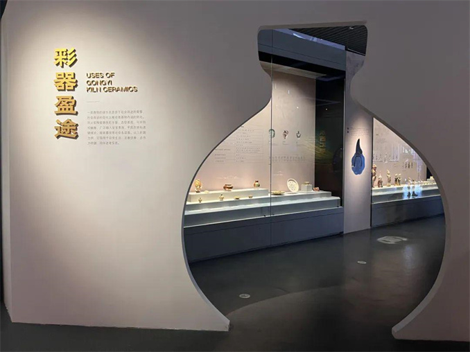 第二部分“匠心冶陶”展示陶模、素?zé)、窯具等,從器物成型與燒制工藝兩個(gè)方面詮釋鞏義窯如何燒制出種類豐富、工藝復(fù)雜的陶瓷器。同時(shí),借助窯爐體驗(yàn)區(qū)、唐三彩制作工序手繪、視頻和陶模互動等多樣化的展示形式,引導(dǎo)觀眾走近窯火的熾熱世界,感受古代匠心與智慧。