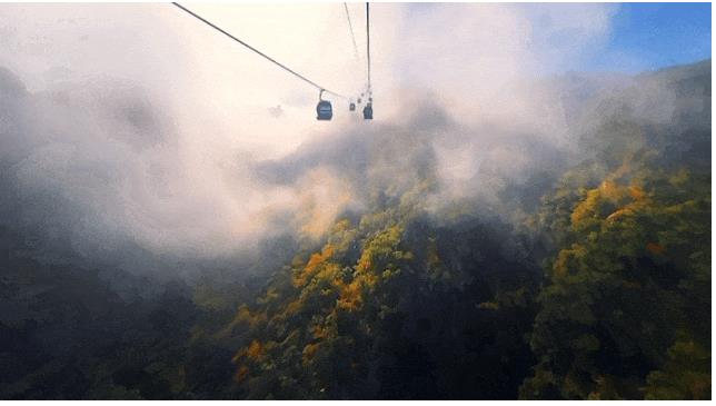 走進11月的老君山,映入眼簾的便是滿山的紅葉。它們?nèi)缁鹑巛保路鹗谴笞匀蛔顭崃业谋磉_。乘坐在索道中穿行,仿佛置身于一幅動人的畫卷之中。