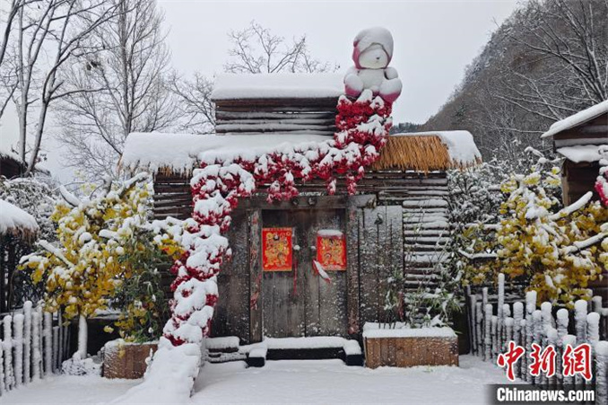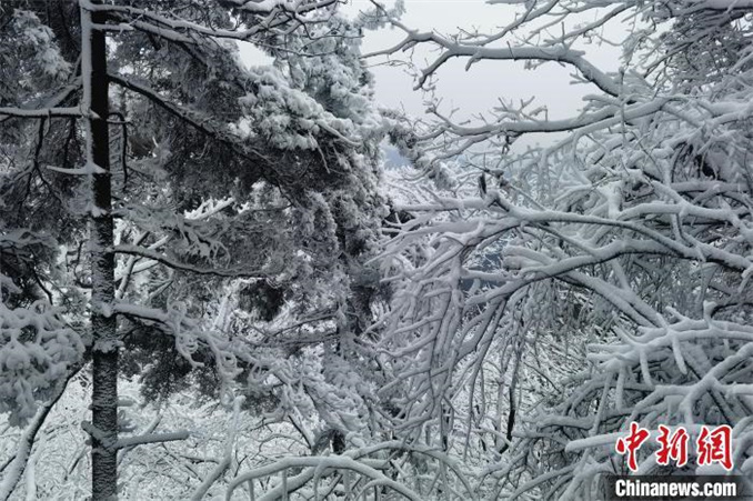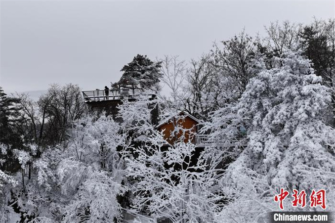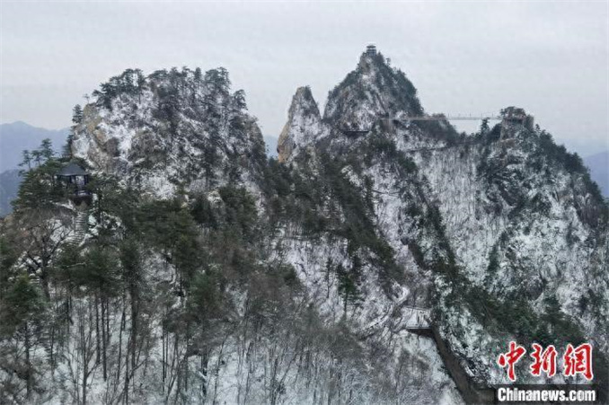 11月17日,隨著一股強(qiáng)冷空氣侵襲,河南省西峽縣老界嶺迎來(lái)2024年入冬后的首場(chǎng)降雪。奇峰、怪石、古松與冰雪相遇,繪就出一幅幅美麗的水墨畫(huà)卷。(無(wú)人機(jī)照片) 楊永青 攝