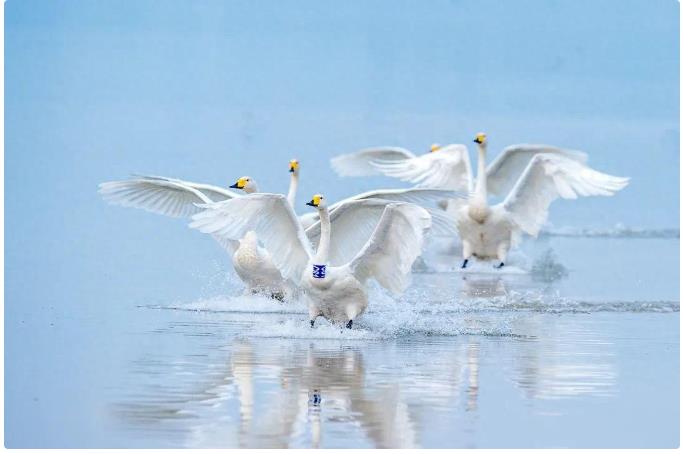 氣溫回暖,陸續(xù)有大天鵝返回西伯利亞地區(qū)產(chǎn)蛋孵化幼鳥。3月上旬,大天鵝的大部隊(duì)全部完成遷徙,飛離三門峽。