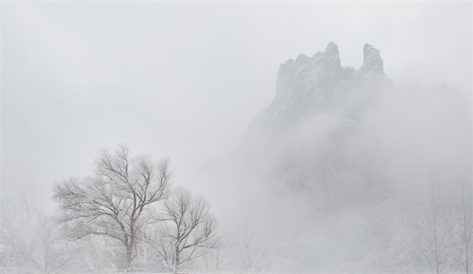 說特別,那是因為在攀山路途中,你可能還會偶遇降雪,雪花漫天飛舞著,鋪天蓋地,像柳絮像鵝毛,悄然無聲地從天空落下來……
