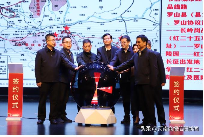 11月16日,在紅二十五軍長征出發(fā)90周年紀(jì)念大會(huì)上,成功舉辦了紅二十五軍長征沿線紅色文旅聯(lián)盟簽約儀式,河南省羅山縣、方城縣、盧氏縣,湖北省英山縣,陜西省丹鳳縣、延川縣,甘肅省涇川縣、會(huì)寧縣等8個(gè)縣代表上臺(tái)集中簽約,開啟了紅二十五軍長征沿線紅色文旅高質(zhì)量發(fā)展的篇章。